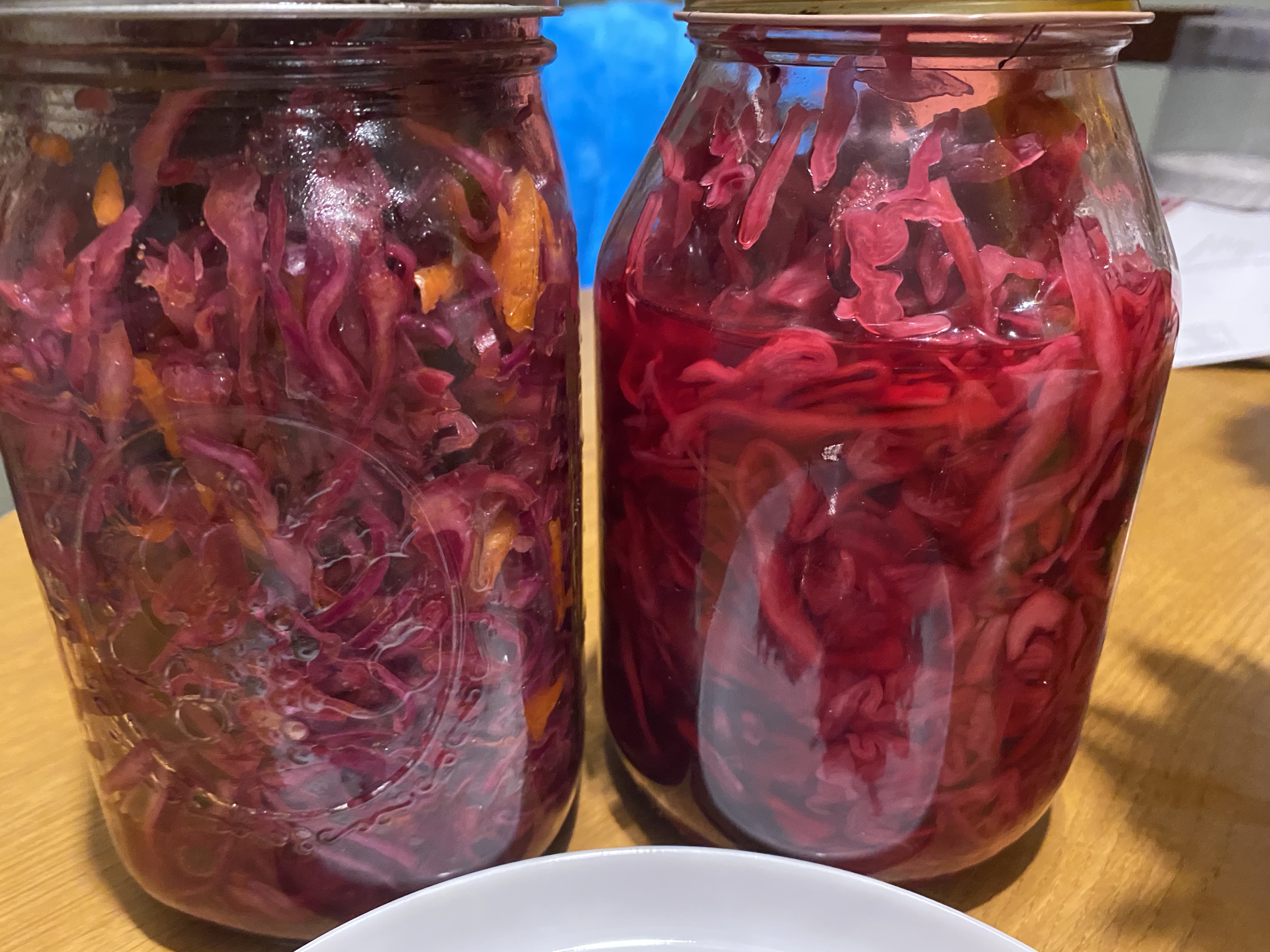 I was first introduced to picked red cabbage with a dear friend I worked with downtown. We would go to the food trucks during lunch. We were hooked when Clover came to town. It was their chickpea fritter sandwich for sure that hooked me on pickled red cabbage.